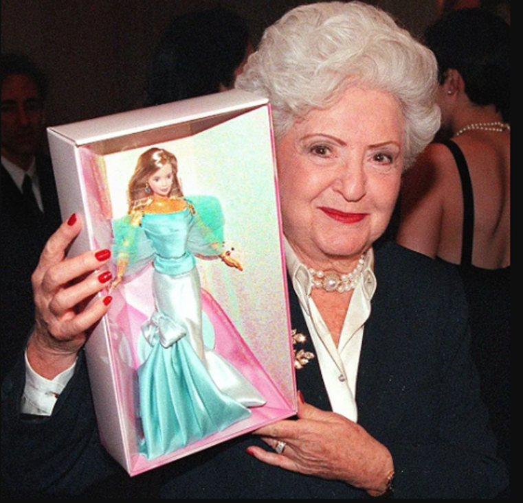 Ruth Handler, salah satu pendiri Mattel Inc. dan penemu boneka Barbie, memamerkan Barbie spesial untuk ulang tahun ke-40 pada sebuah konferensi pers pada 1999 di New York City.
