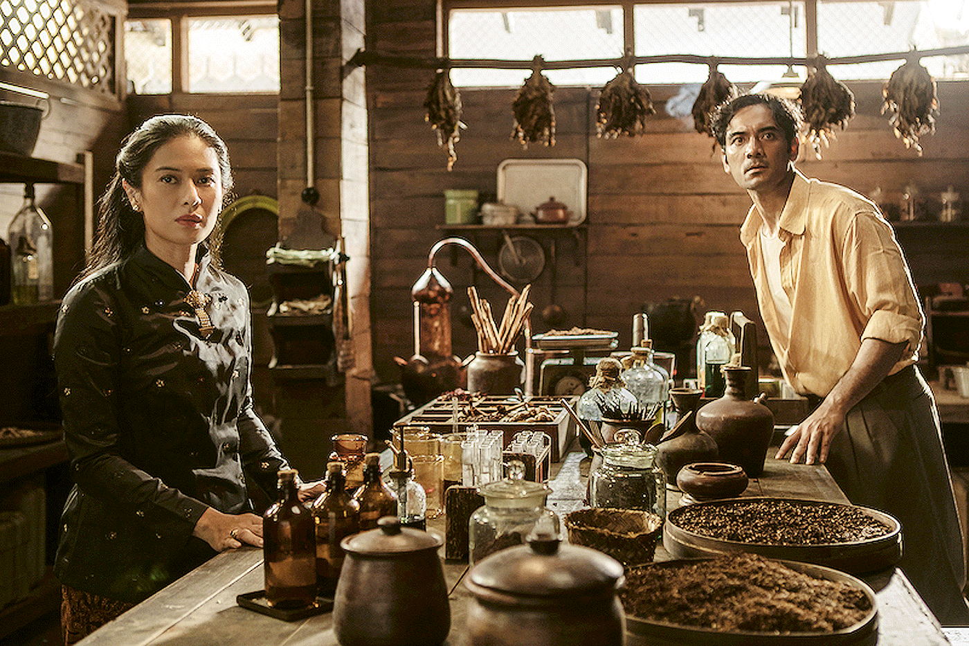 SENSORIK: Jeng Yah (kiri) dan Raya dalam salah satu adegan serial Gadis Kretek yang berlatar waktu 1960-an.