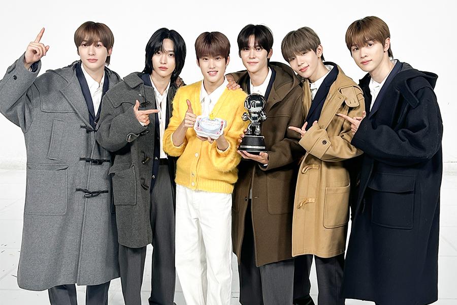 RIIZE berhasil meraih trofi pertamanya lewat lagu terbaru mereka Love 119 di acara musik M Countdown./Soompi