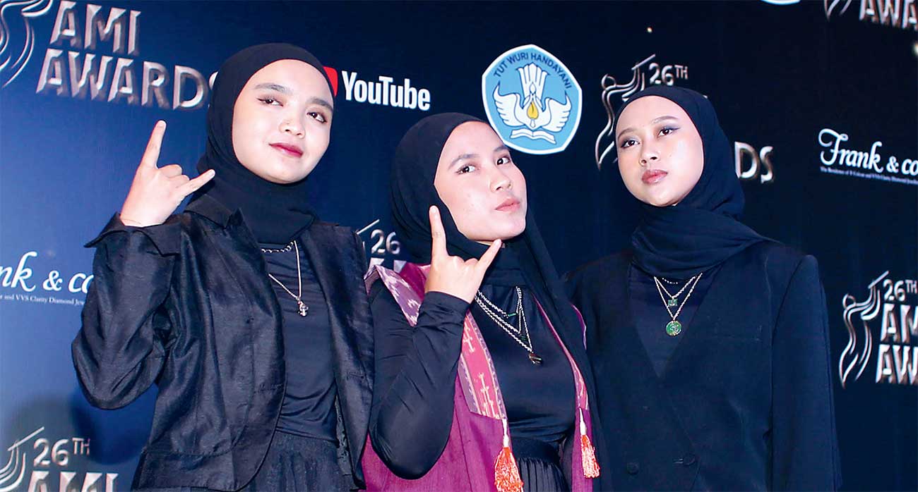 MENDUNIA: Voice of Baceprot saat hadir dalam acara AMI Awards 2023 di Jakarta.