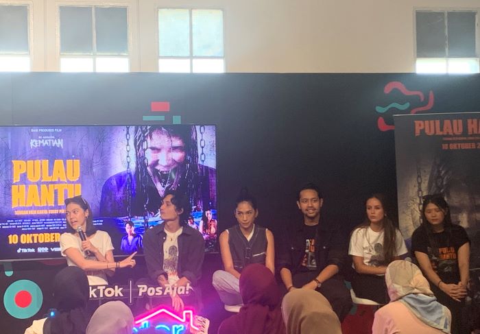 Acara promosi film Pulau Hantu di Kota Tua Jakarta, Sabtu (28/9), diwarnai sesi tanya jawab dengan anak anak muda yang memiliki ketertarikan pada dunia perfilman. (Abdul Rahman/ JawaPos.com)