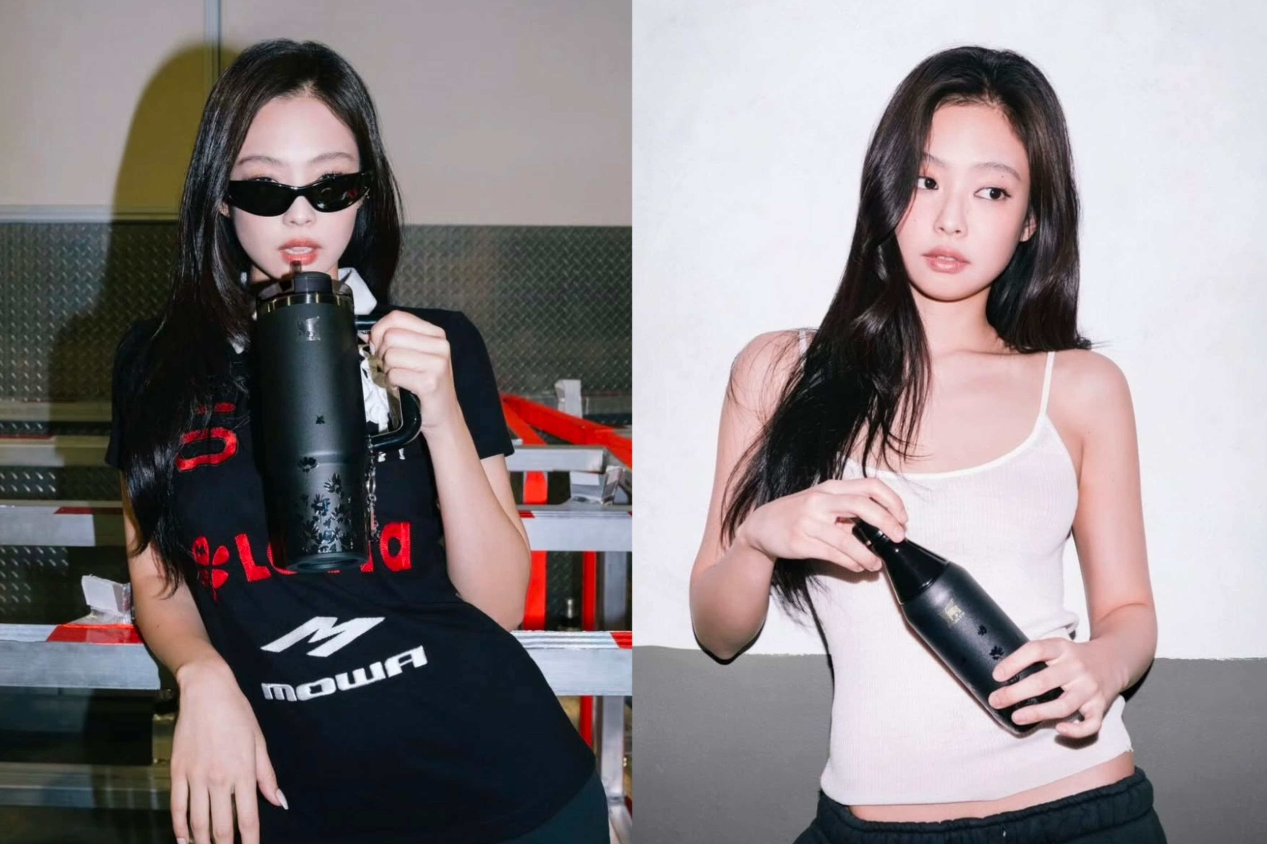 Kolase Jennie memegang tumblr kolaborasi dengan stanley dan detail design. (Instagram @stanley_brand)