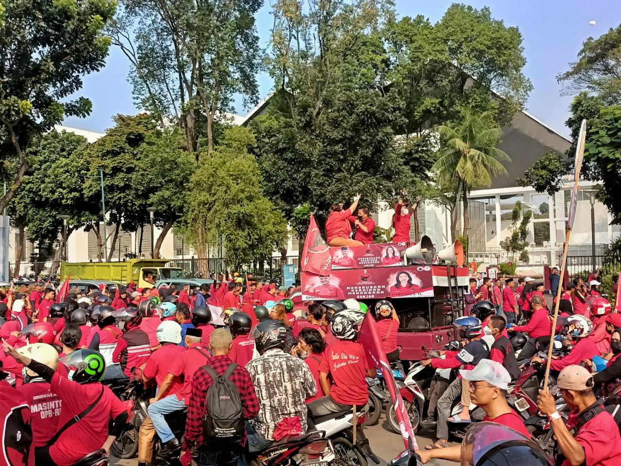 Menunjukkan sikap solid bergerak, ribuan kader PDIP DKI Jakarta datang ke arena acara dengan pawai motor. Dipimpin mobil komando, barisan PDIP mulai memadati Gedung parkir B Kompleks GBK.