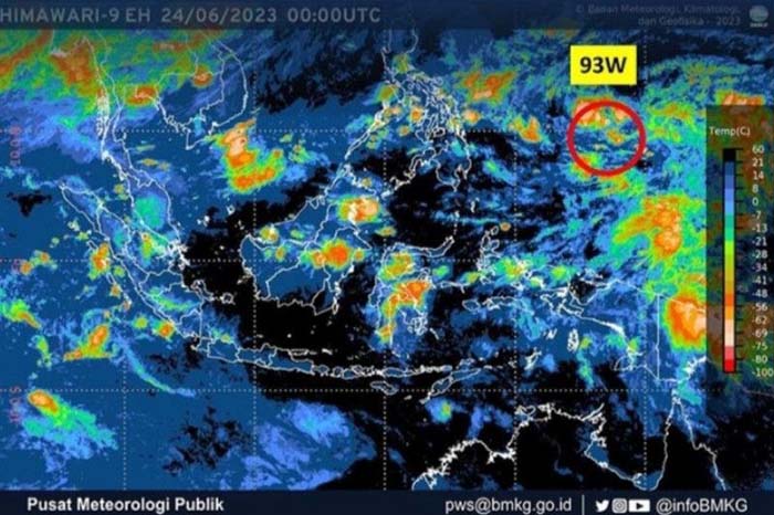 JawaPos.com - Badan Meteorologi, Klimatologi, dan Geofisika (BMKG) mendeteksi kemunculan bibit siklon tropis 93W di Samudera Pasifik sebelah utara Papua. Bibit siklon tropis ini, berpotensi memengaruhi cuaca di beberapa wilayah Indonesia dalam beberapa hari ke depan.