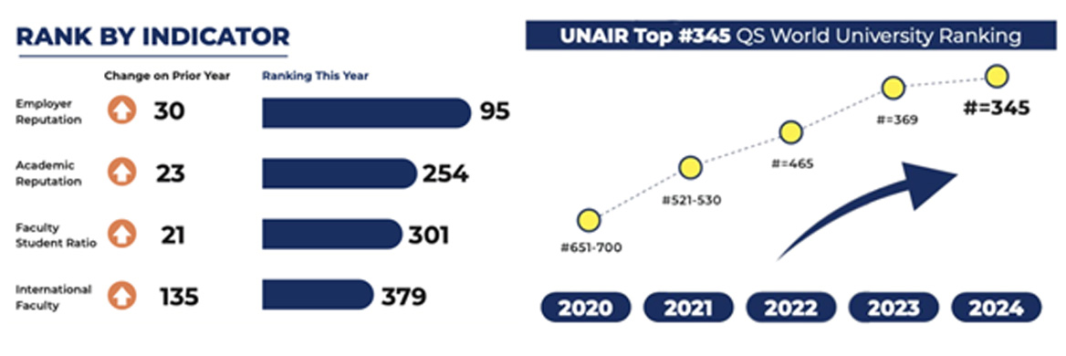 Unair unggul dalam berbagai indikator penilaian QS WUR. Di antaranya employer reputation, yakni kepuasan pimpinan perusahaan terhadap pekerja alumni Unair yang naik signifikan 30 poin menjadi top 95 atau masuk ranking 100 besar dunia. Indikator itu membuktikan kualitas dan relevansi pendidikan di Unair sesuai dengan kebutuhan zaman. Lulusannya terserap di dunia kerja, memiliki daya saing, dan menjabat pada posisi yang baik.