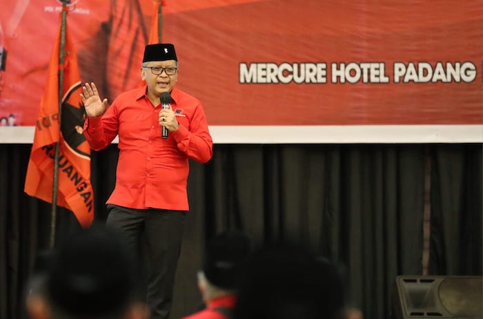Sekjen PDIP Hasto Kristiyanto yang hadir di Kota Padang untuk membuka Rakerda PDIP Sumatera Barat.