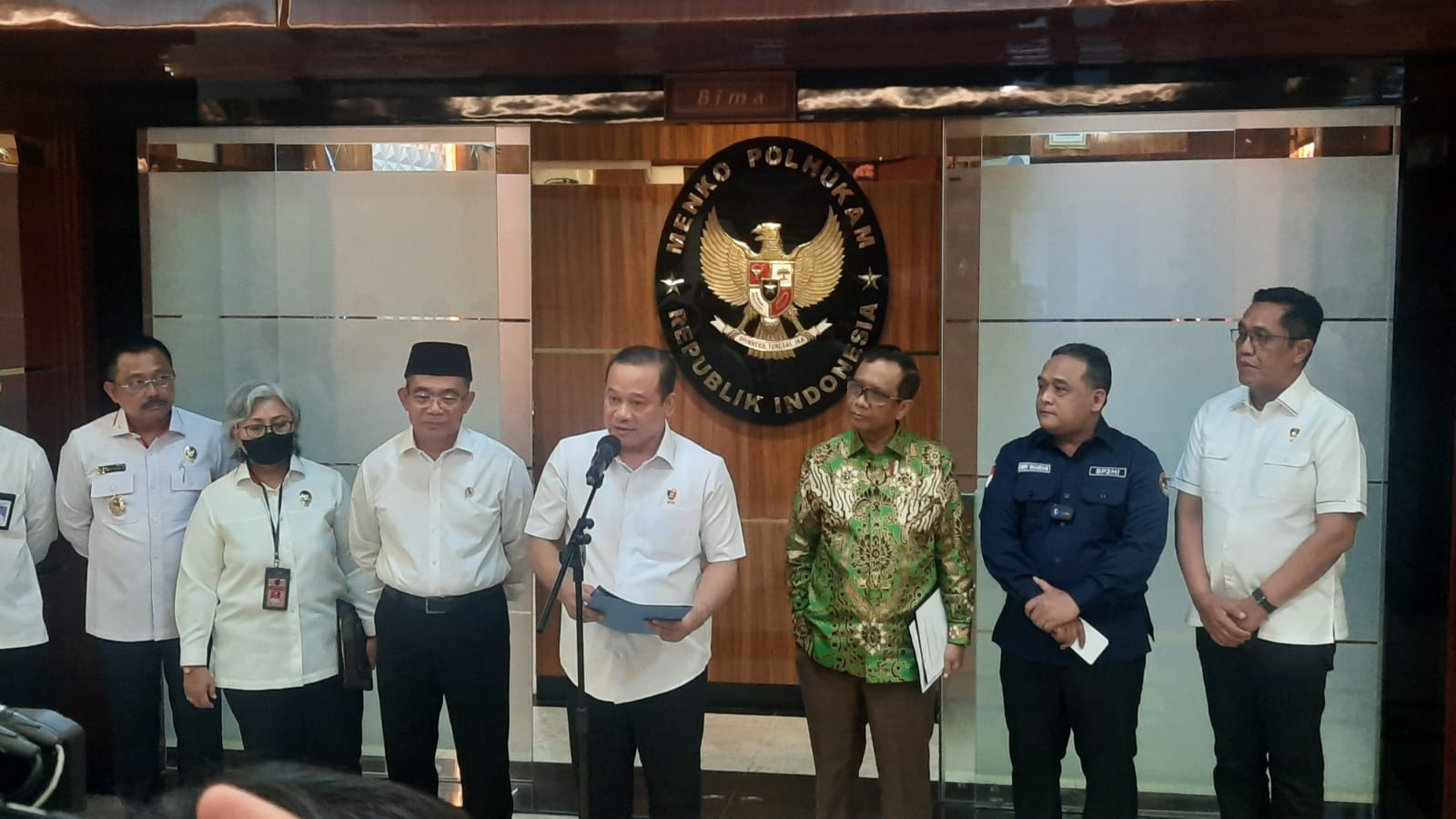 Kepala BP2MI Benny Rhamdani berbicara soal praktik TPPO di kantor Kemenkopolhukam. (Istimewa)