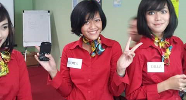Dita Melia Kurniawati (kanan) dan teman-teman pramugari Trigana Air
