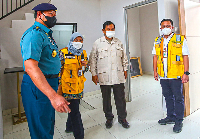 UNTUK PAHLAWAN: Menteri Pertahanan Prabowo Subianto (dua dari kanan) bersama KSAL Laksamana TNI Yudo Margono (kiri), Direktur Rumah Khusus Yusniewati, dan Kepala Satuan Kerja Penyediaan Perumahan Provinsi Jawa Timur Sultan Sidik Nasution melihat rumah khu
