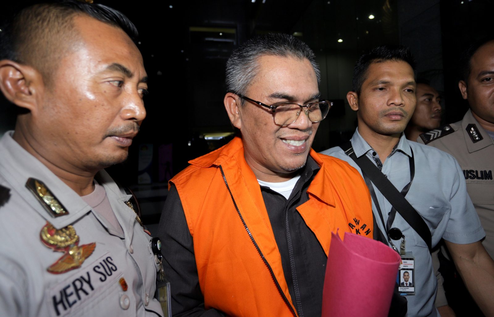 Bupati Muara Enim Ahmad Yani menggunakan rompi oranye usai menjalani pemeriksaan terkait Operasi Tangkap Tangan (OTT) di Gedung KPK, Jakarta, Selasa (3/9/2019). Dalam OTT tersebut KPK menetapkan tiga orang tersangka yakni Bupati Muara Enim Ahmad Yani, Kep