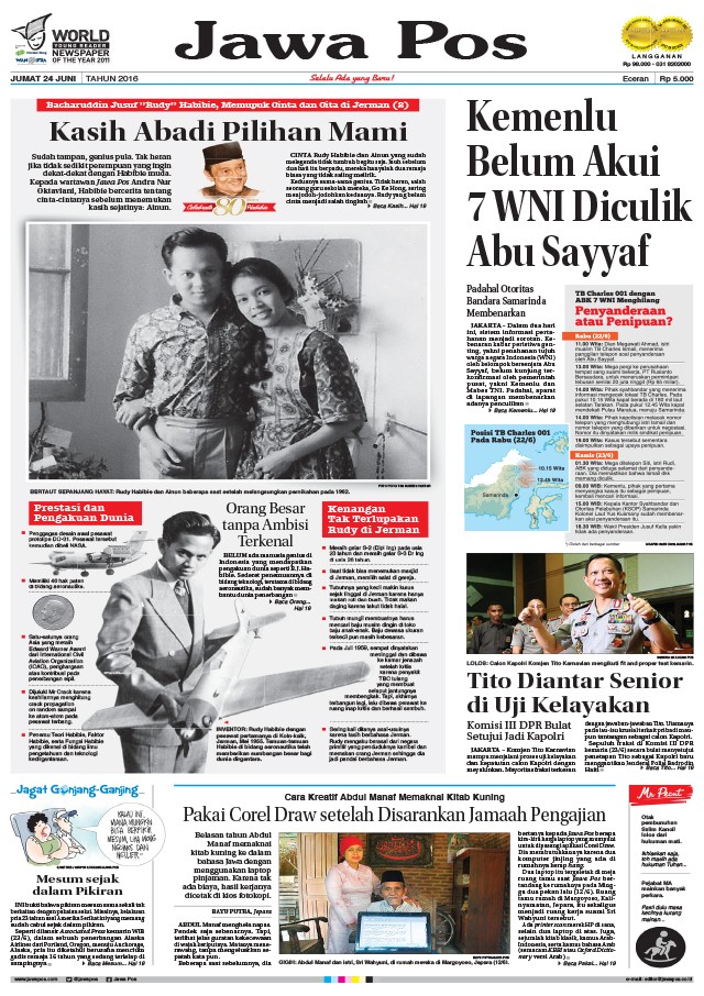 Koran Jawa Pos edisi 24 Juni 2016 dengan edisi khusus B.J Habibie.