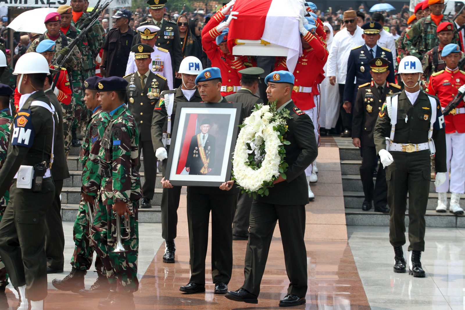 Prosesi Upacara Pemakaman Presiden Ke 3 Republik Indonesia, Baharuddin Jusuf Habibie di Taman Makam Pahlawan (TMP) Kalibata, Jakarta, Kamis (12/9). Presiden Ke 3 BJ Habibie Wafat pada Tanggal 11 September 2019 di Usia 83 Tahun di RSPAD Gatot Soebroto. BJ
