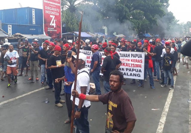 Kantor DPRD Papua Barat, Majelis Rakyat Papua Barat, eks kantor Gubernur Papua Barat dibakar massa saat melakukan aksi damai yang berakhir ricuh. (Foto: Axel Refo/Radar Papua)