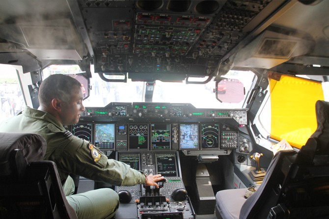 "Dalam waktu tiga hari A400M membawa lima kali kargo c-130 dalam tiga kali penerbangan," terang Ed HorneA400M dibekali empat mesin turboprop EPI TP 400.