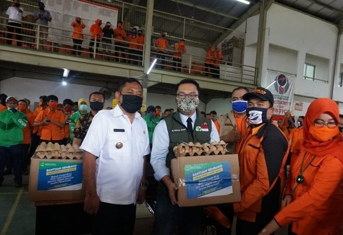 Gubernur Jawa Barat M. Ridwan Kamil menjelaskan, dari kemensos untuk warga Jabar di luar Bodebek jumlahnya satu juta kepala keluarga yang akan dapat bansos tunai. Nanti dibagikan oleh PT Pos Indonesia.