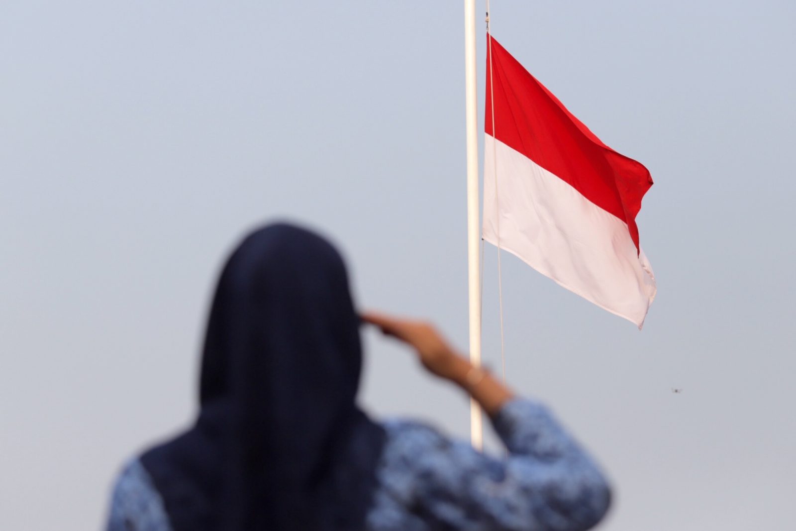 Suasana upacara peringatan hari kemerdekaan di Pantai Maju, Jakarta Utara, Sabtu (17/8/2019).Upacara HUT ke-74 kemerdekaan RI itu diikuti Aparatur Sipil Negara (ASN), Forum Komunikasi Pimpinan Daerah (Forkopomda), Organisasi Masyarakat dan siswa sekolah.