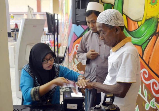 TAAT: Warga melakukan perekaman e-KTP di Mal Pelayanan Publik kemarin. (JUPRI/Jawa Pos Radar Madura)