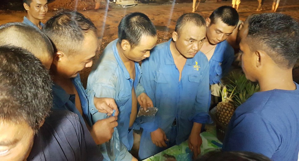 Sejumlah Tenaga Kerja Asing (TKA) berbelanja pada saat jam istirahat di Desa Morosi, Kab. Konawe, Sulawesi Tenggara, Jumat (30/11/2016)