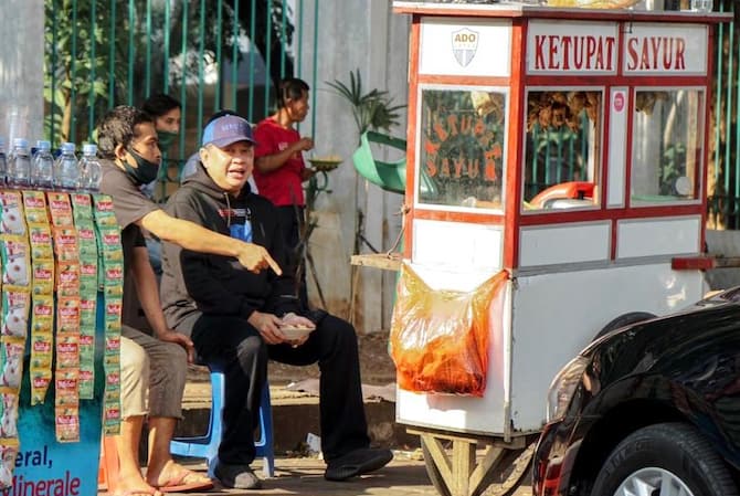 Tak lama setelah ia pun beranjak mendorong gerobaknya ketupat sayurnya menuju tempat dia biasa mangkal untuk menjajakan dagangannya. Bersama sejumlah pedagang gerobakan lainnya. Mulai dari tukang, bubur ayam, ketoprak, mie ayam hingga pedagang minuman.