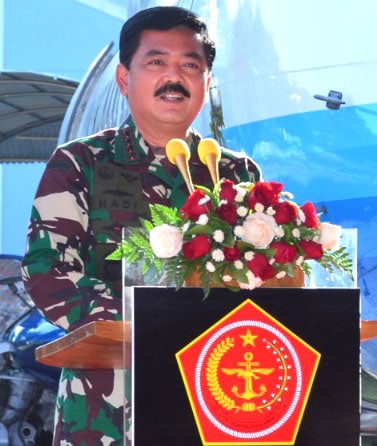 BENTUK PENGHORMATAN: Panglima TNI Marsekal TNI Hadi Tjahjanto dalam peresmian kemarin, Rabu (26/8). (TNI-AU FOR JAWA POS)
