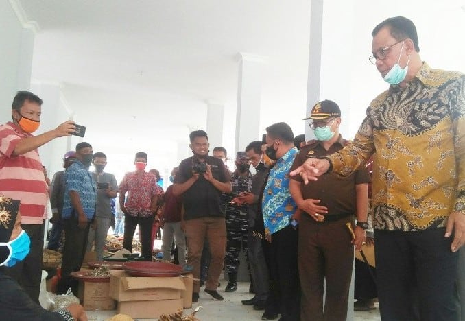 Salah satu kegiatan Bupati Rokan Hilir Suyatno saat meninjau Pasar Rakyat Tuk Lahasyim di Kepenghuluan Labuhan Tangga Kecil, Kecamatan Bangko, beberapa bulan lalu. Dedi Dahmudi/Antara