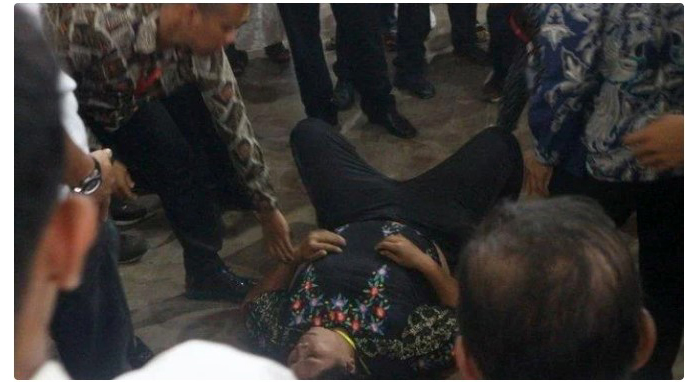 Lalu Paspampres itu pun mendekati emak-emak itu langsung mendorongnya dengan keras hingga wanita tersebut jatuh terjengkang.