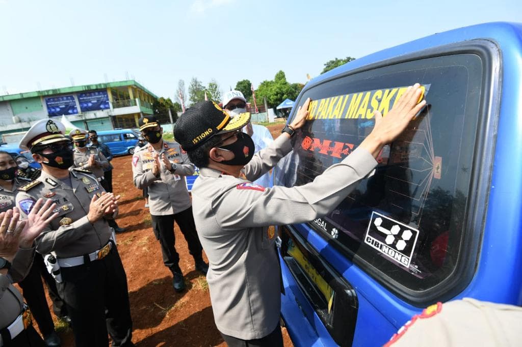 Kakorlantas Irjen Pol Istiono berharap kesadaran masyarakat terhadap penerapan protokol kesehatan bisa terus meningkat. Sebagai pengingatnya, Korlantas menempelkan stiker bertuliskan 'ayo pakai masker' di Angkutan Umum Kota (Angkot).