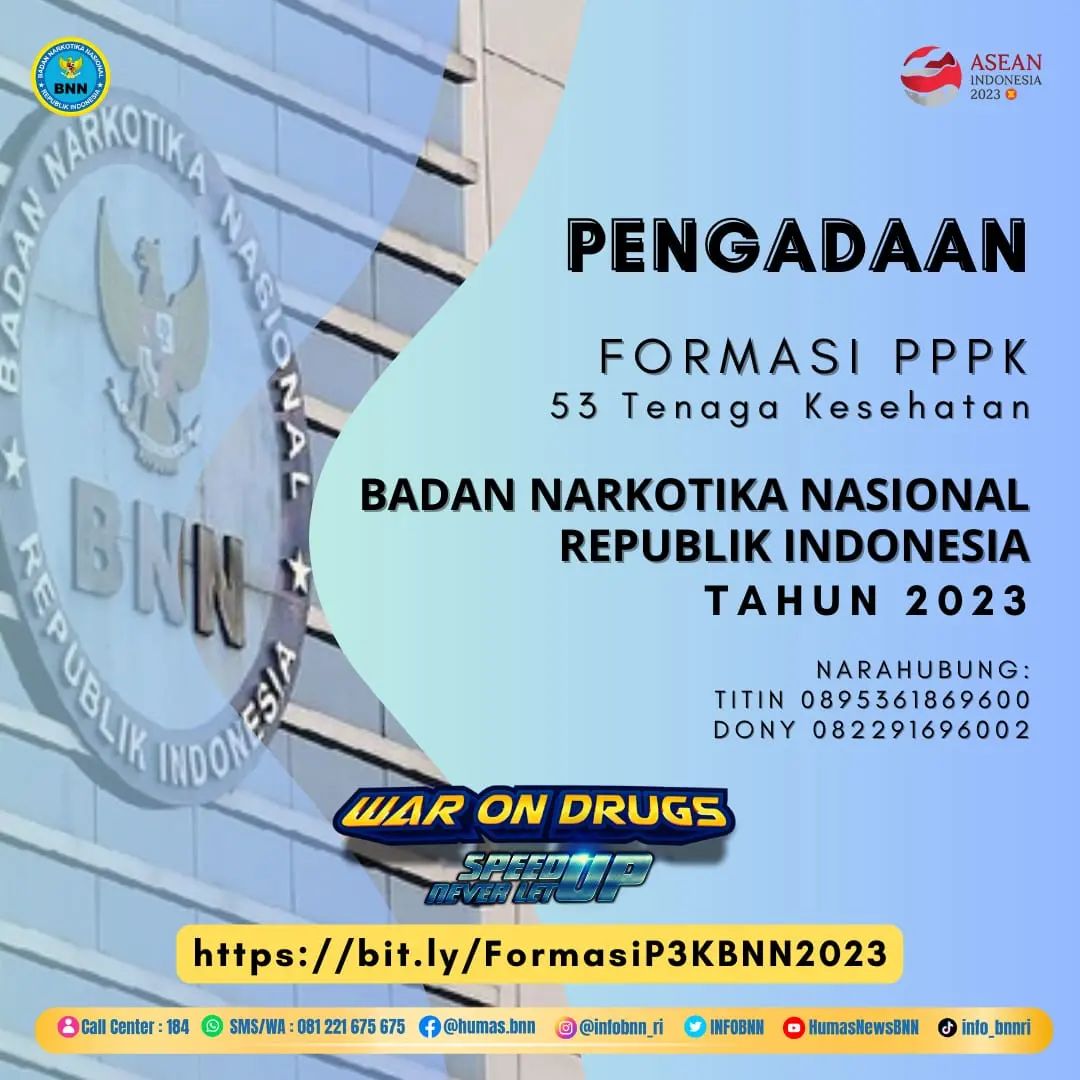 “Yuk daftar sekarang juga! Badan Narkotika Nasional (BNN) membuka formasi PPPK Tenaga Kesehatan tahun 2023,” terangnya di instagram resmi.