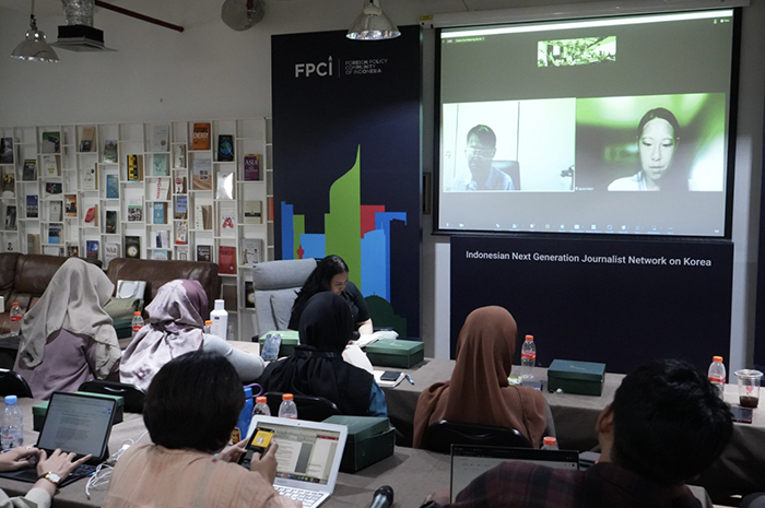 Professor and Head of Center for ASEAN-Indian Studies at the Institute of Foreign Affairs and National Security Choe Wongi saat menjadi pembicara.