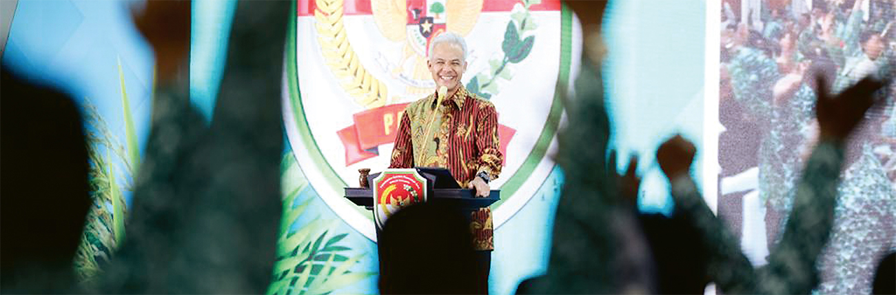 BAHAS REGULASI: Ganjar Pranowo menghadiri rakernas Perkumpulan Aparatar Pemerintah Desa Seluruh Indonesia (Papdesi) di Gedung Smesco, Jakarta Selatan, Selasa (26/9).