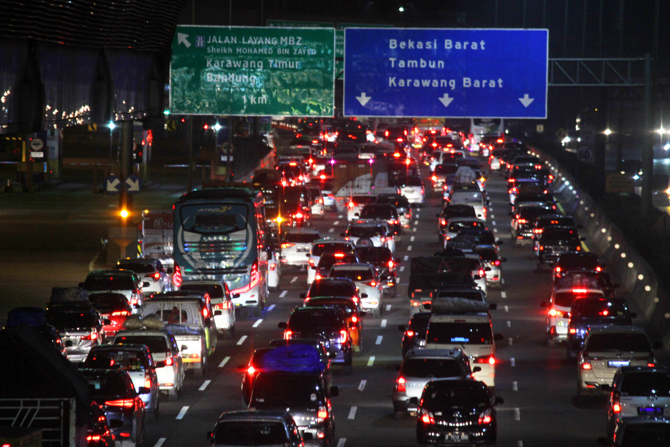 "Total kendaraan menuju Jakarta dari arah Timur adalah sebanyak 61.309 kendaraan, turun sebesar 1,7 persen dari lalin new normal," ujar Dwimawan.