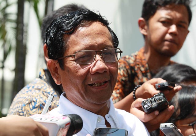 Anggota Dewan Pengarah Badan Pembinaan Ideologi Pancasila (BPIP) Mahfud MD melayani pertanyaan awak media di Kompleks Istana Kepresidenan, Jakarta, Senin (21/10/2019). Menurut rencana Presiden Joko Widodo akan memperkenalkan jajaran kabinet barunya kepada