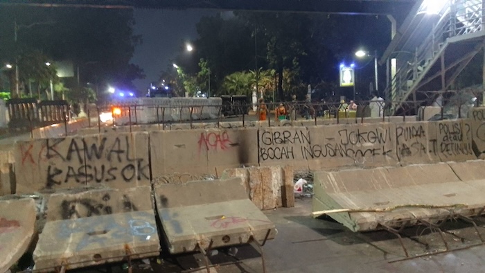 Sisa aksi demo mahasiswa di kawasan Patung Kuda yang tak jauh dari Istana Presiden. Aksi sempat diwarnai dengan penangkapan mahasiswa.