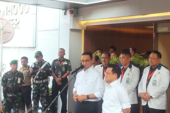 Anies Baswedan- Muhaimin Iskandar selesai melakukan rangkaian pemeriksaan kesehatan di RSPAD Gatot Soebroto, Jakarta, Sabtu (21/10). (Abdul Rahman)