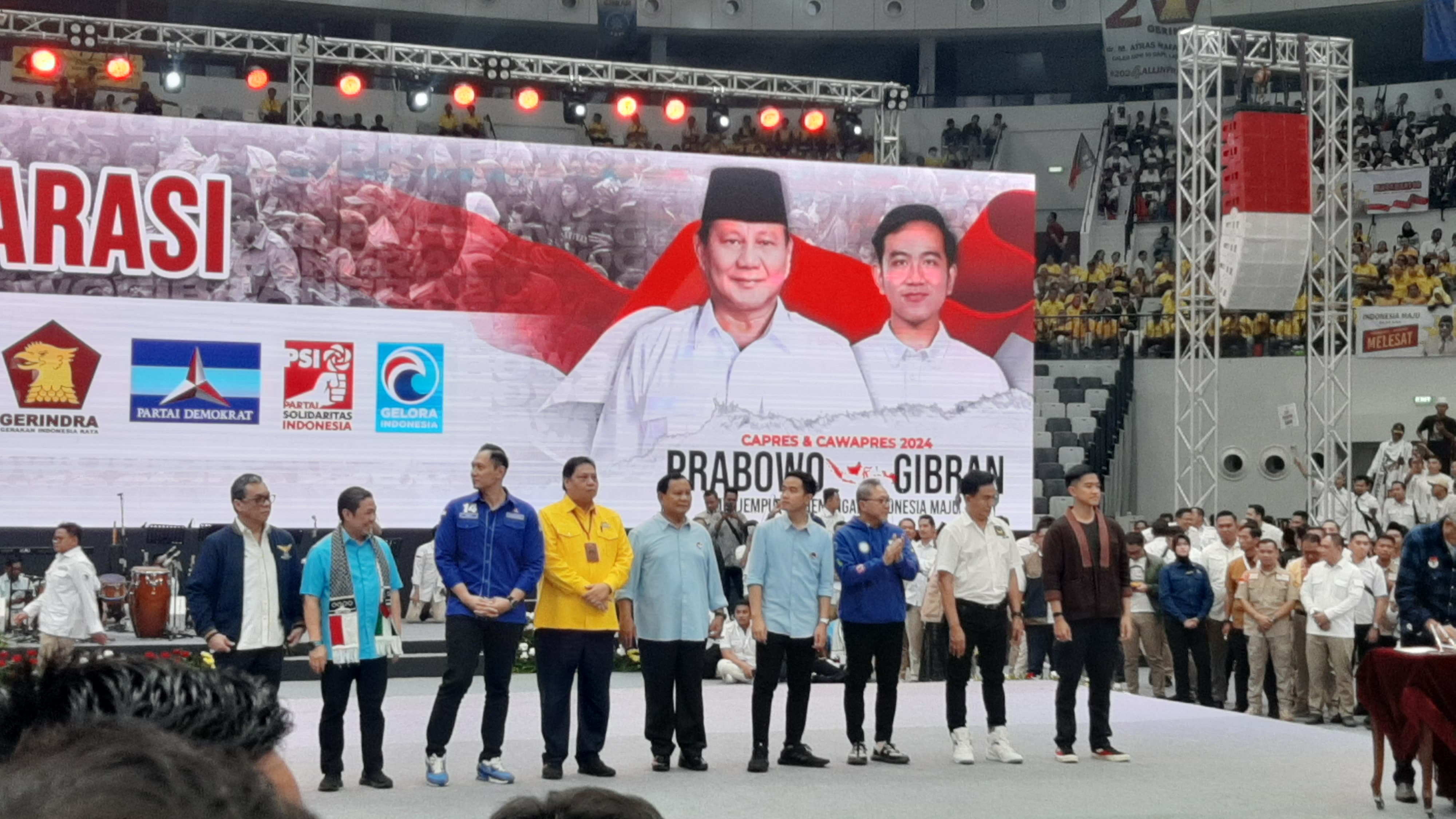 Bacapres Prabowo Subianto dan Bacawapres Gibran Rakabuming Raka meminta doa restu kepada para pendukung karena hendak mendaftar ke Komisi Pemilihan Umum (KPU).