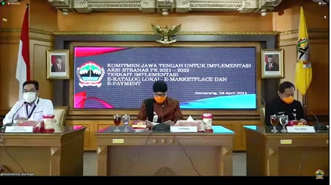 JawaPos.com - Pemerintah Provinsi Jawa Tengah berkomitmen menegakkan Strategi Nasional Pencegahan Korupsi (Stranas PK) 2021-2022. Hal ini diimplementasikan dengan penerapan E-Payment, E-Katalog Lokal, dan E-Marketplace.