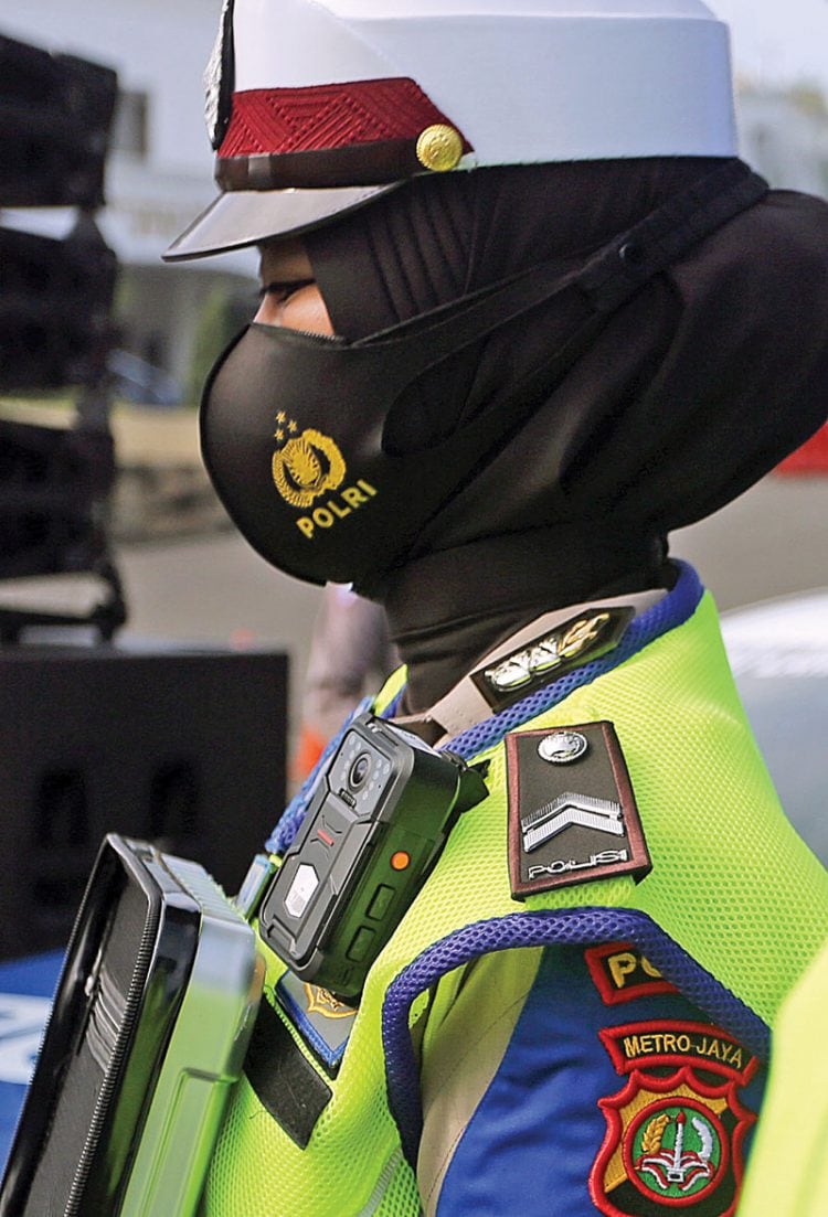 Kamera pengawas juga bisa dipasang pada seragam anggota kepolisian. (SALMAN TOYIBI/JAWA POS)