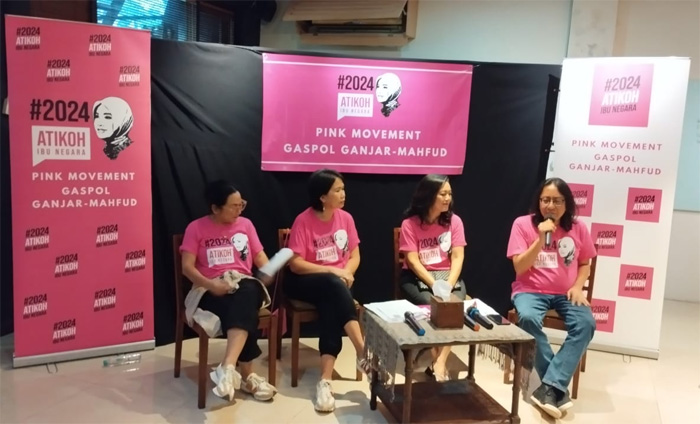 Gerakan yang direpresentasikan melalui sosok Atikoh dan warna PINK ini juga melibatkan partisipasi berbagai organ dan komunitas relawan pendukung Ganjar-Mahfud, terutama dari kelompok perempuan yang bergerak bersama menyuarakan kekuatan perempuan dalam pilpres tahun depan.