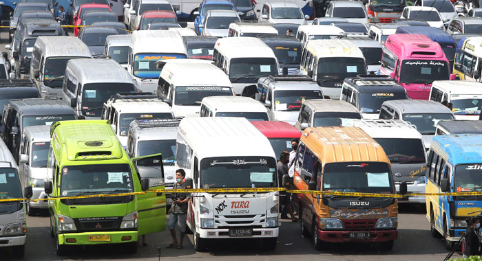 DIDUGA ANGKUT PEMUDIK: Ditlantas PMJ berhasil menangkap dan menyita 115 kendaraan travel gelap yang diduga digunakan untuk mengangkut pemudik di wilayah Jakarta dan sekitarnya. (SALMAN TOYIBI/JAWA POS)