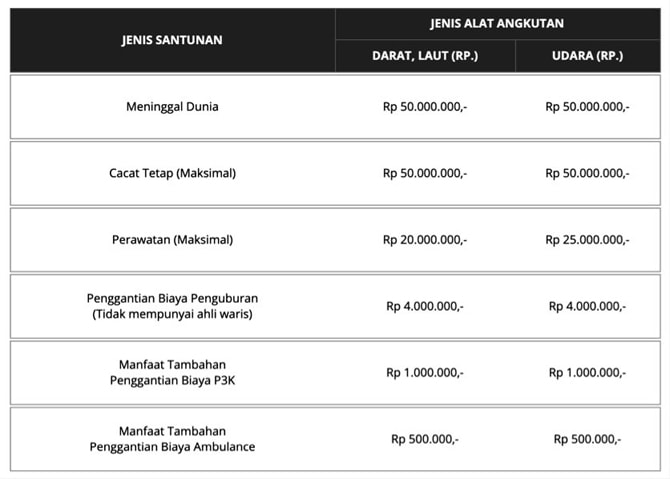 Dengan kedua program tersebut setiap masyarakat yang menjadi korban kecelakaan berhak mendapatkan santunan, tentunya sesuai dengan ketentuan yang diatur oleh Pemerintah.