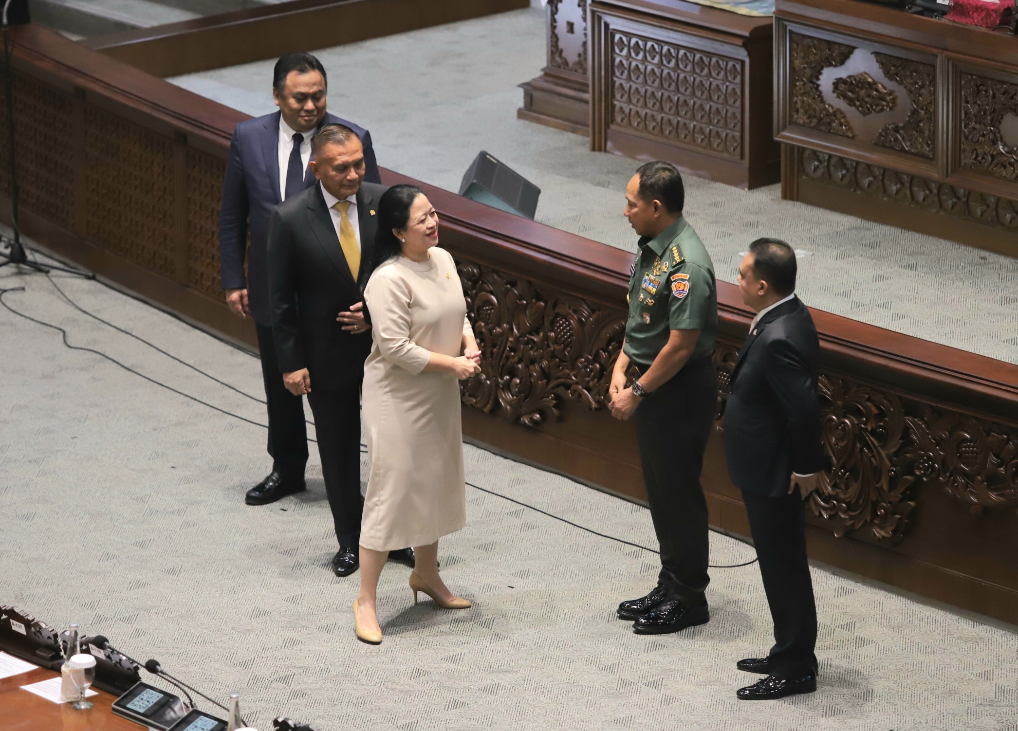 Rapat paripurna itu dipimpin langsung oleh Ketua DPR RI Puan Maharani. Awalnya, Ketua Komisi I DPR RI Meutya Hafid melaporkan hasil uji kelayakan dan kepatutan calon Panglima TNI.