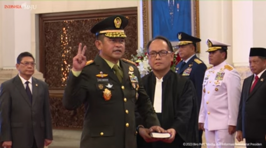 Presiden Joko Widodo (Jokowi) melantik Letjen Maruli Simanjuntak sebagai Kepala Staf TNI Angkatan Darat (KSAD) di Istana Negara, Jakarta, Rabu (29/11). (Foto: Istimewa)
