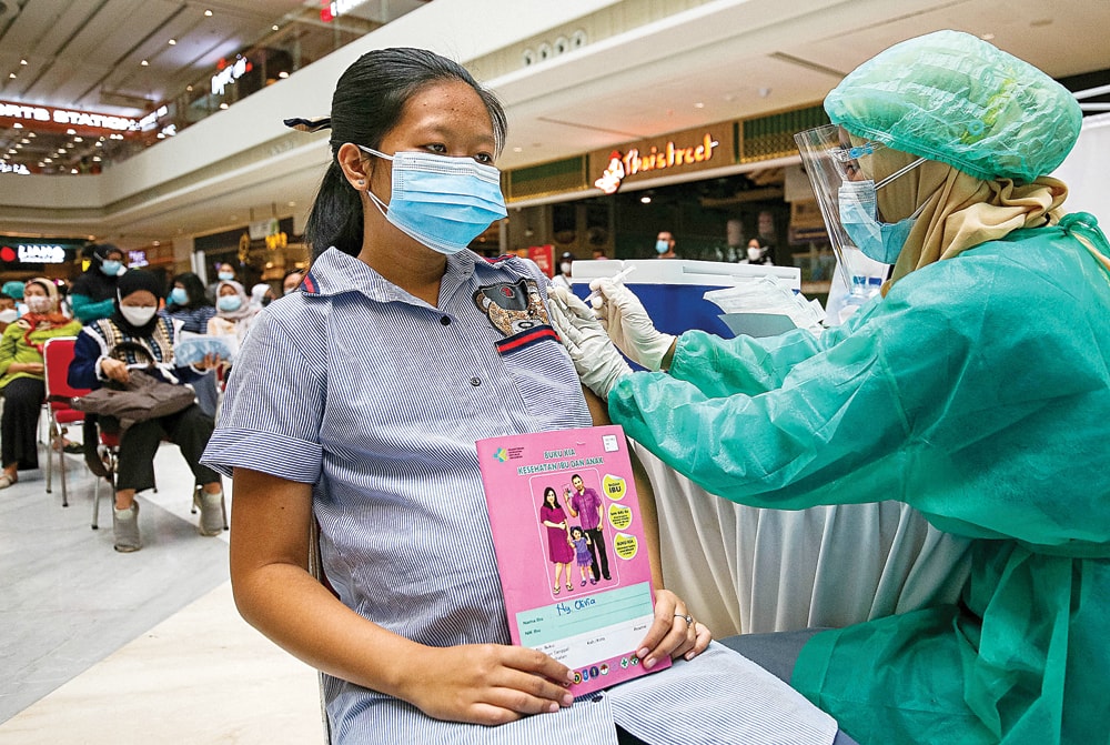 JEMPUT BOLA: Ibu hamil mengikuti vaksinasi di minisentra vaksinasi Mal Green Sedayu, Jakarta Barat, kemarin (14/8). (MIFTAHULHAYAT/JAWA POS)