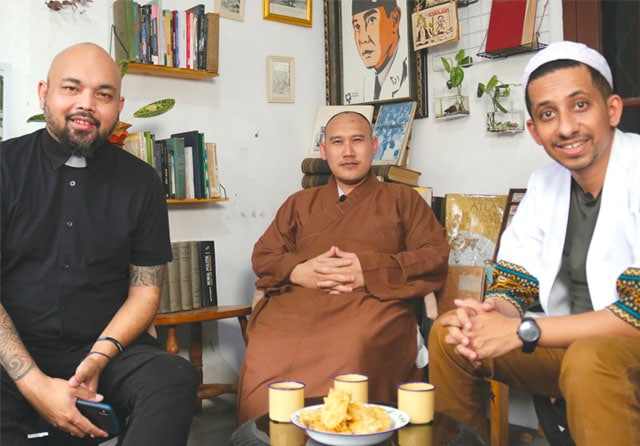 DUDUK SAMA RENDAH: Habib bersama pemuka agama Kristen dan Buddha usai berbincang tentang isu kemanusiaan. (HABIB HUSEIN JAFAR FOR JAWA POS)