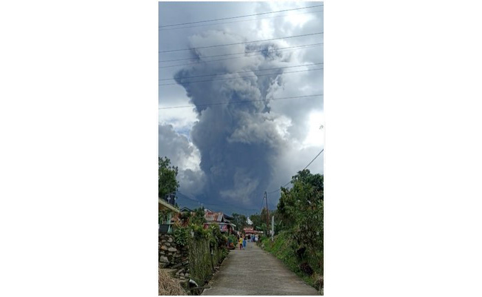 Erupsi Gunung Marapi yang berada di Kabupaten Agam dan Kabupaten Tanah Datar, Sumbar, Minggu (3/12), pukul 14.55 WIB.