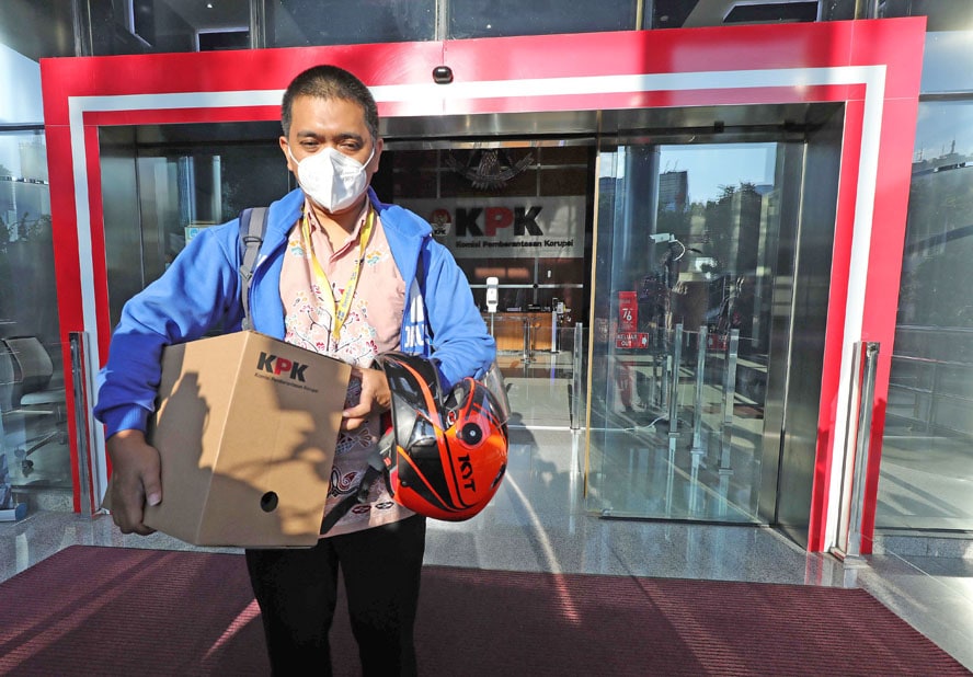 Salah satu Pegawai KPK yang Tidak lolos TWK keluar membawa sisa barang dan peralatan di Gedung KPK, Jakarta, Kamis (16/5/2021). Sebanyak 57 orang pegawai yang tidak lolos TWK akan resmi keluar dari KPK 30 September mendatang. FOTO : FEDRIK TARIGAN/ JAWA P