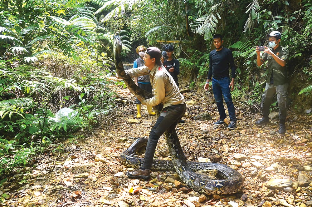 JawaPos.com - Tinggi tegak lehernya saja sekitar 1 meter. Dengan bobot mencapai 120 kilogram, ular sanca batik itu begitu mengintimidasi.