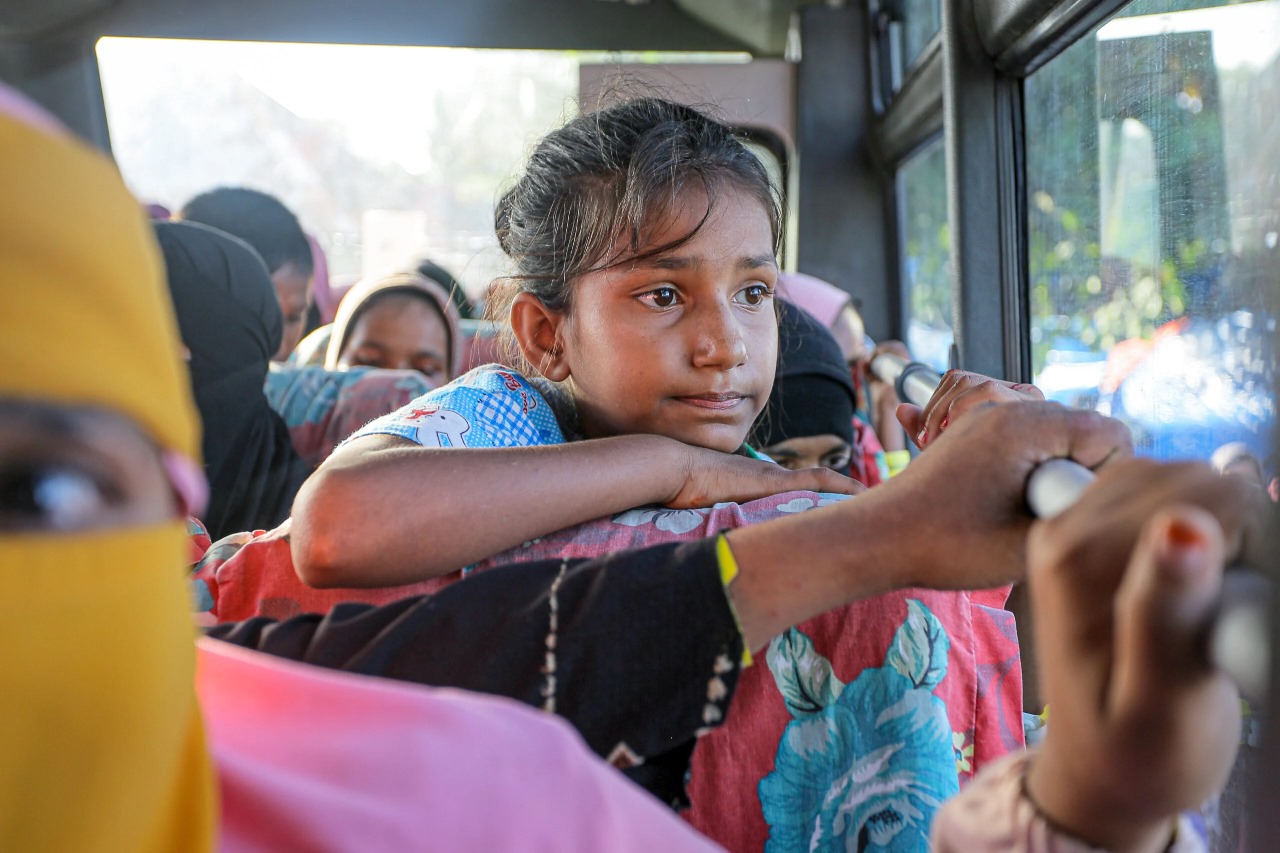 Seorang pengungsi anak Rohingya sedang duduk di dalam bus. (unhcr.org/id/)