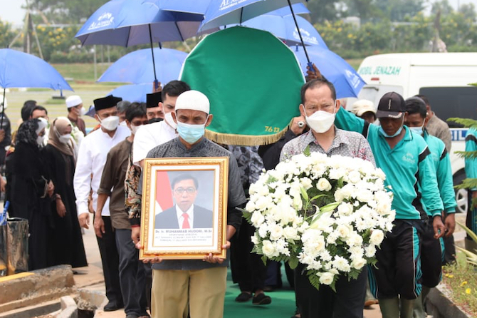 Usai melakukan penghormatan di kantor Kemendagri, jenazah almarhum langsung dilepas untuk dimakamkan di tempat peristirahatan terakhir, di Al- Azhar Memorial Garden, Karawang.