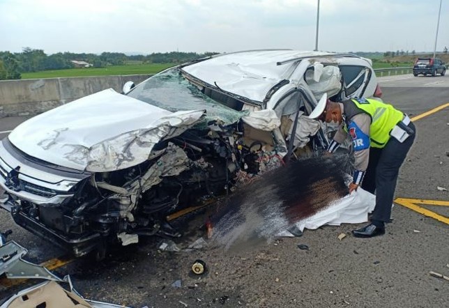 Kondisi mobil Pajero putih yang ditumpangi Vanessa Angel dan suaminya, Febri Andriansyah. Istimewa